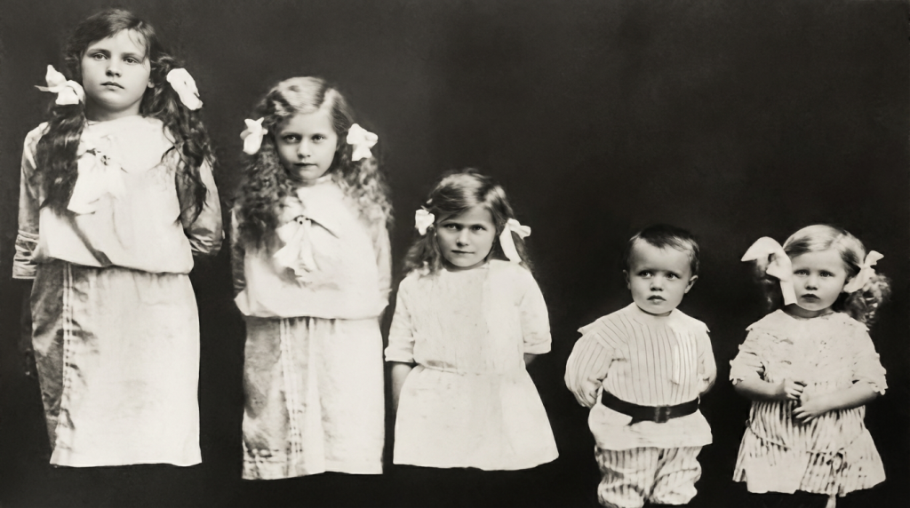 “Restore this vintage photograph. Remove all scratches, dust, and creases. Correct color fading and fix yellowing. Sharpen details, reduce noise, and enhance texture. High resolution, clean image.”